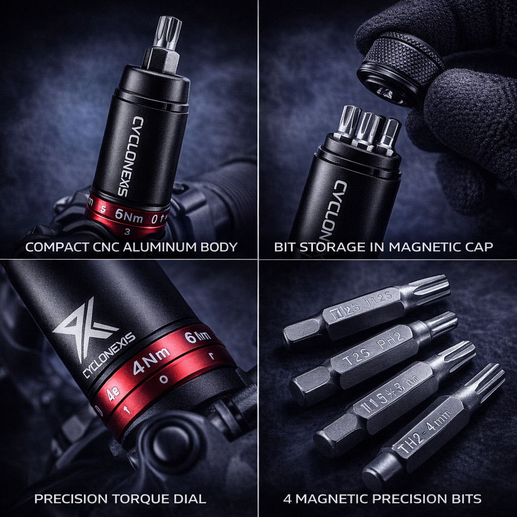GripCore Mini is a compact preset torque tool engineered for cyclists who demand precise tightening without carrying a full-size torque wrench. Designed specifically for carbon components, it delivers consistent torque output to prevent over-tightening and protect sensitive bike parts.